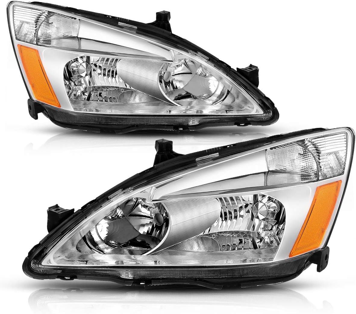 Amazon Com Autosaver88 Headlight Assembly Compatible With 03 04 05 06 07 Honda Accord Oe Headlamp Replacement Chrome Housing Clear Lens Automotive
