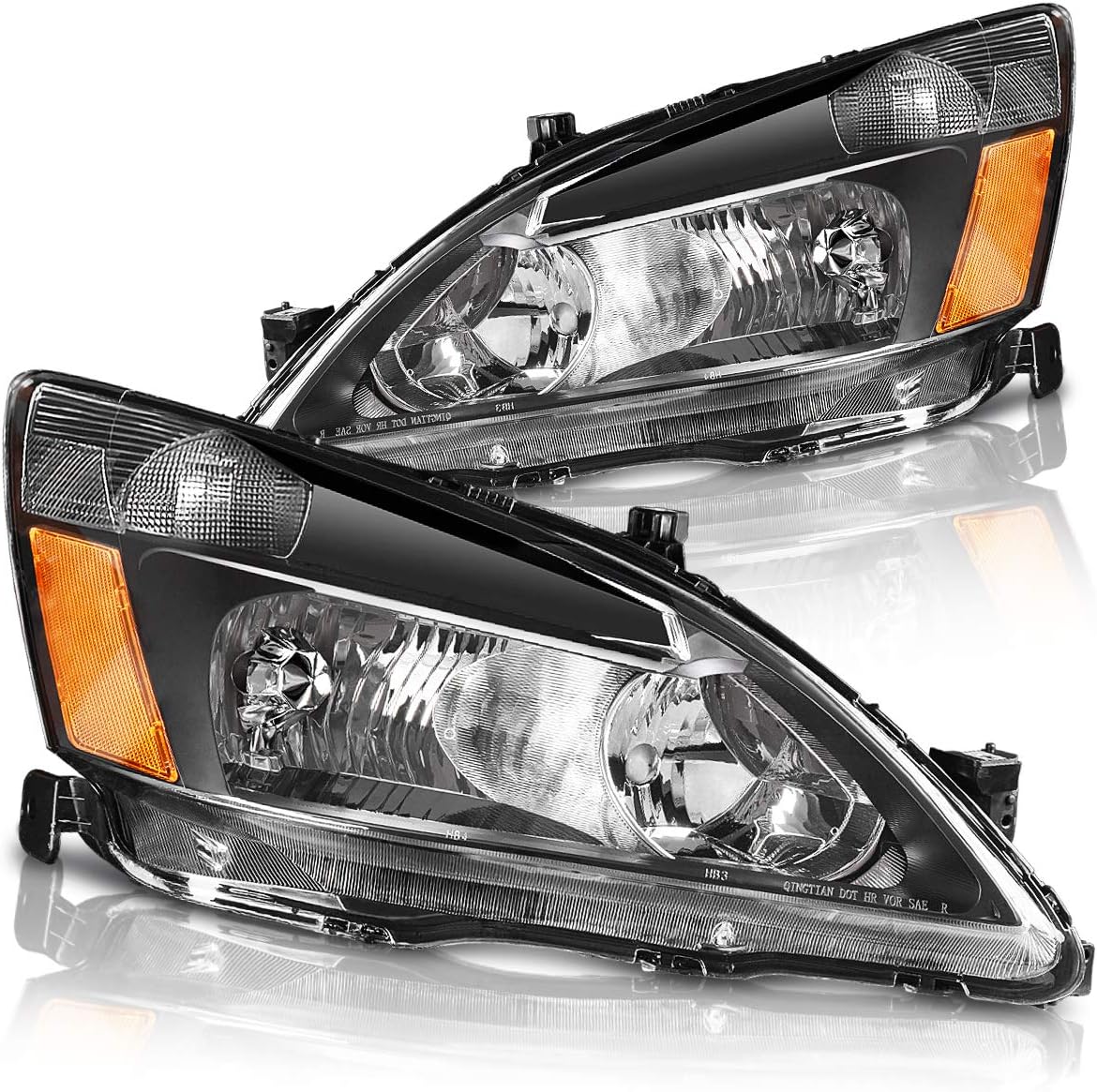 Amazon Com Dwvo Headlight Assembly Compatible With 2003 2004 2005 2006 2007 Honda Accord Oe Headlamp Replacement Amber Reflector Black Housing Pair Ho2502120 Ho2503120 Automotive