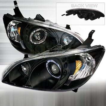 Amazon Com Spec D Tuning 2004 2005 Honda Civic Halo Projector Headlights Black Automotive
