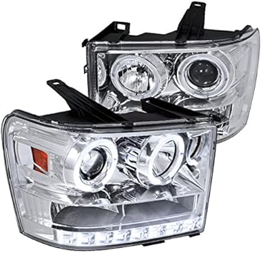 Amazon Com Spec D Tuning 2lhp Sie07 Tm Gmc Sierra 1500 2500 3500 Chrome Clear Halo Led Drl Projector Headlights Automotive
