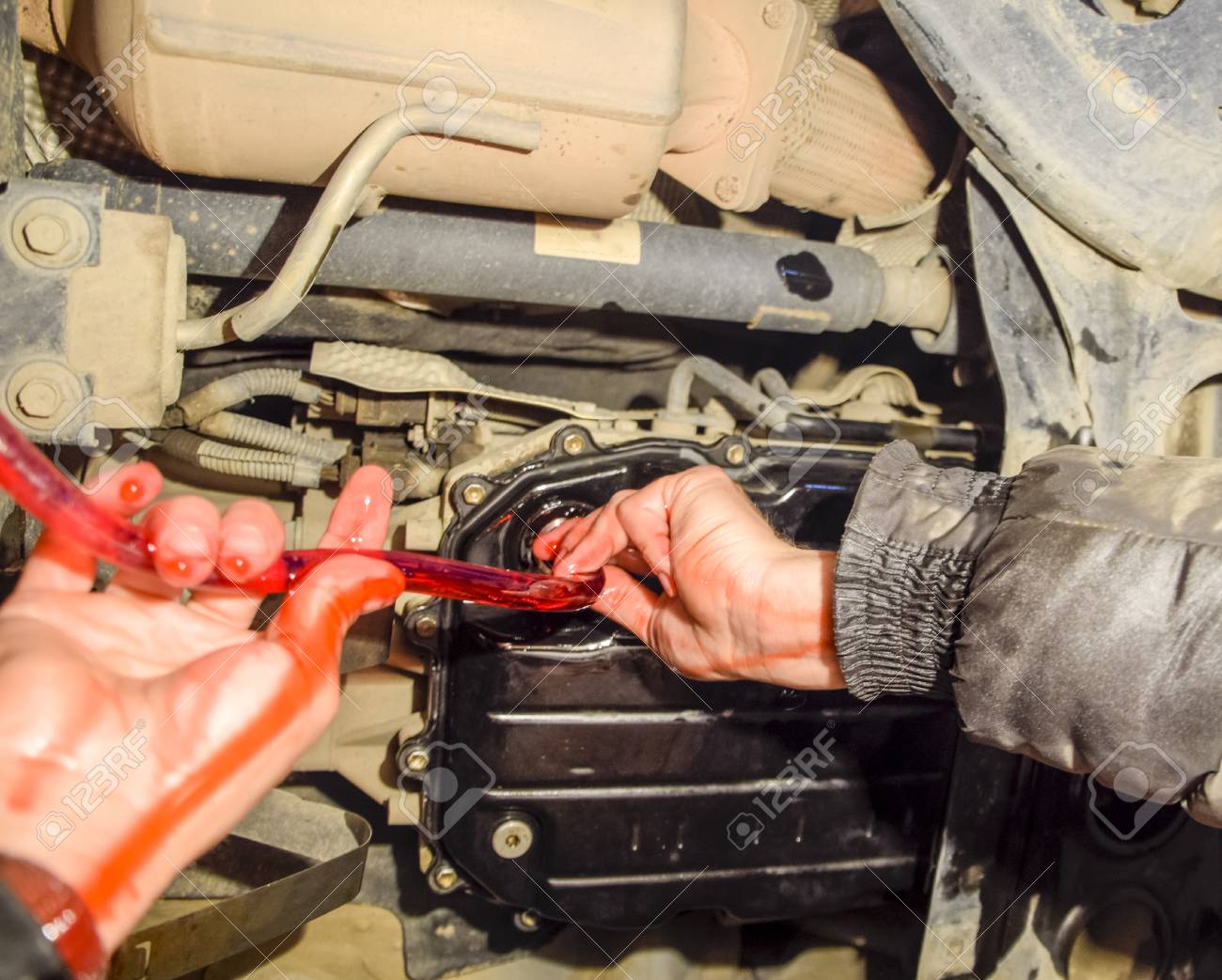 Oil Change In Automatic Transmission Filling The Oil Through Stock Photo Picture And Royalty Free Image Image 78712243