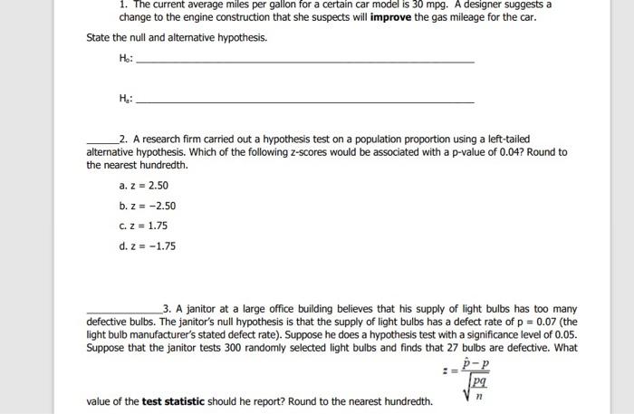 Solved 1 The Current Average Miles Per Gallon For A Cert Chegg Com